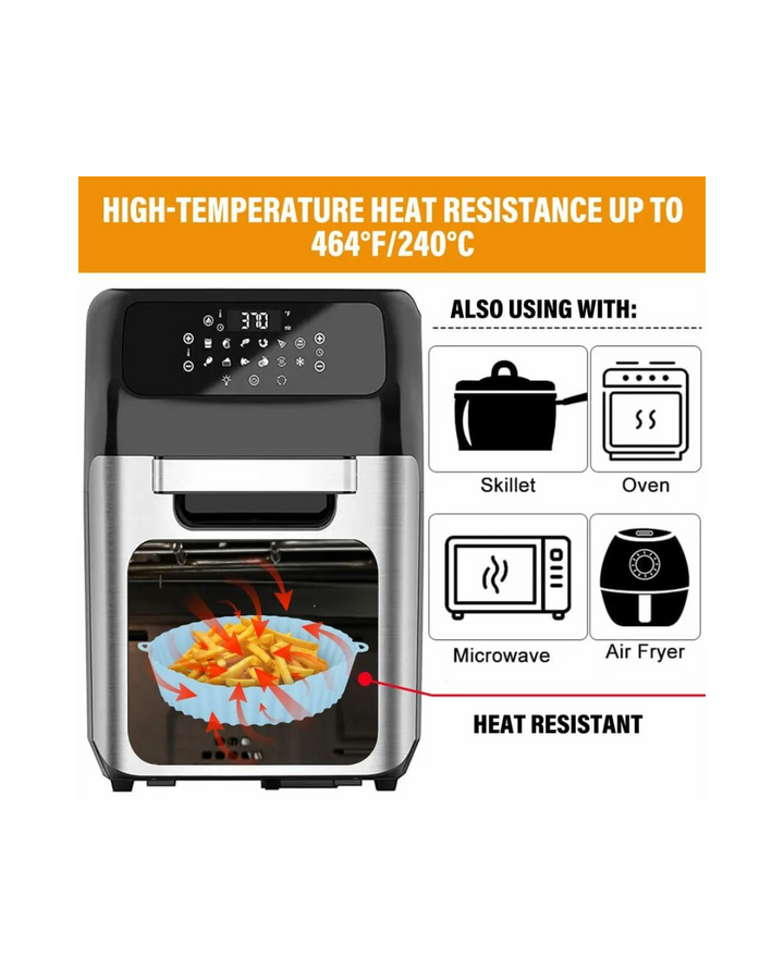 ¡Descubre el molde de silicona redondo resistente a cambios de temperatura para tu Air Fryer! Crea deliciosos platos horneados de forma rápida y saludable. Su material duradero y antiadherente garantiza una fácil limpieza. Con este molde versátil, disfrutarás de comidas caseras perfectamente cocinadas en tu Air Fryer.