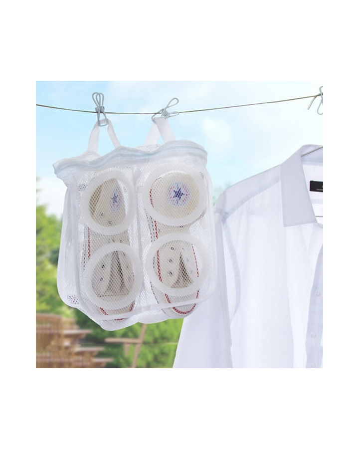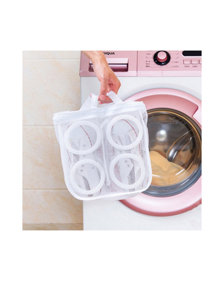 Esta útil malla está especialmente diseñada para lavar los zapatos en la lavadora sin que sufran ningún tipo de desgaste o se llenen de lanas de las otras prendas, además en la misma podrás poner a secar los zapatos colgándolos fácilmente para secarlos en el sol.