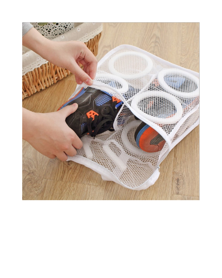 Esta malla puede usarse tanto para lavar los zapatos como para almacenarlos en el closet, también se usa para lavar ropa delicada y ropa interior.