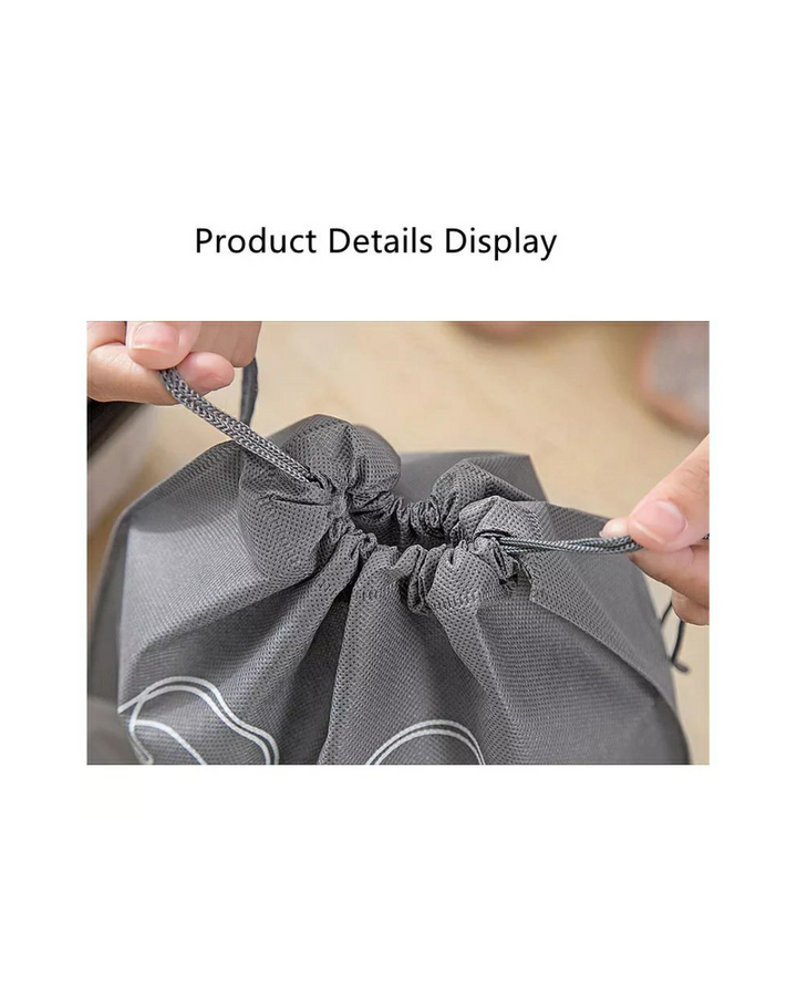 Estás bolsas están hechas de tela no tejida, gruesa y empalme de PVC con cordón para una organización conveniente.