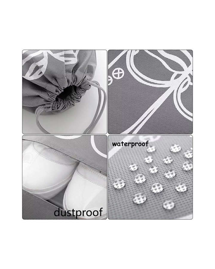 Es una bolsa de almacenamiento de zapatos no tejidas y con cordón, también funciona como organizadores portátiles grandes para el hogar y bolsas de zapatos deportivos impermeables para hombres y mujeres.