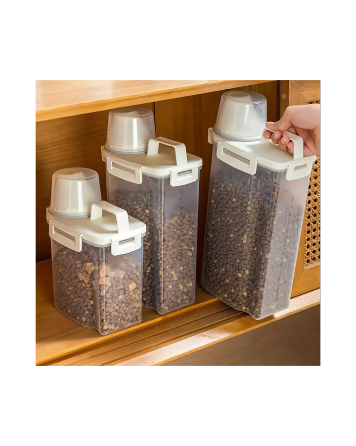 Este recipiente es ideal para el almacenamiento de alimentos como harina, arroz, nueces, frijoles, aperitivos, cereales, almacenamiento de alimentos para mascotas, etc.