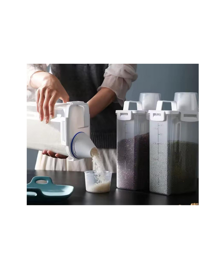 Contenedor de almacenamiento en el cual puedes guardar diferentes cosas ya sea en tu cocina, zona de lavado, mascotas, entre otros. Desde arroz delgado y granos, hasta jabón líquido o en polvo, puedes economizar espacio con este maravilloso recipiente que ahorra espacio