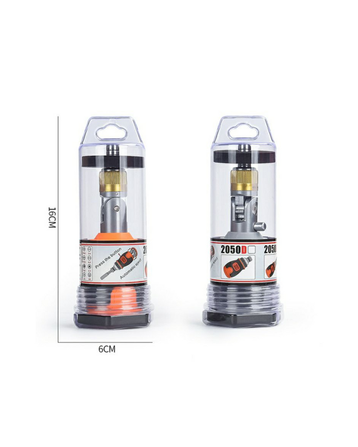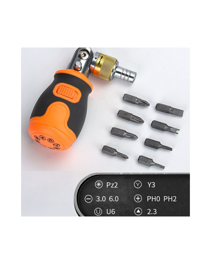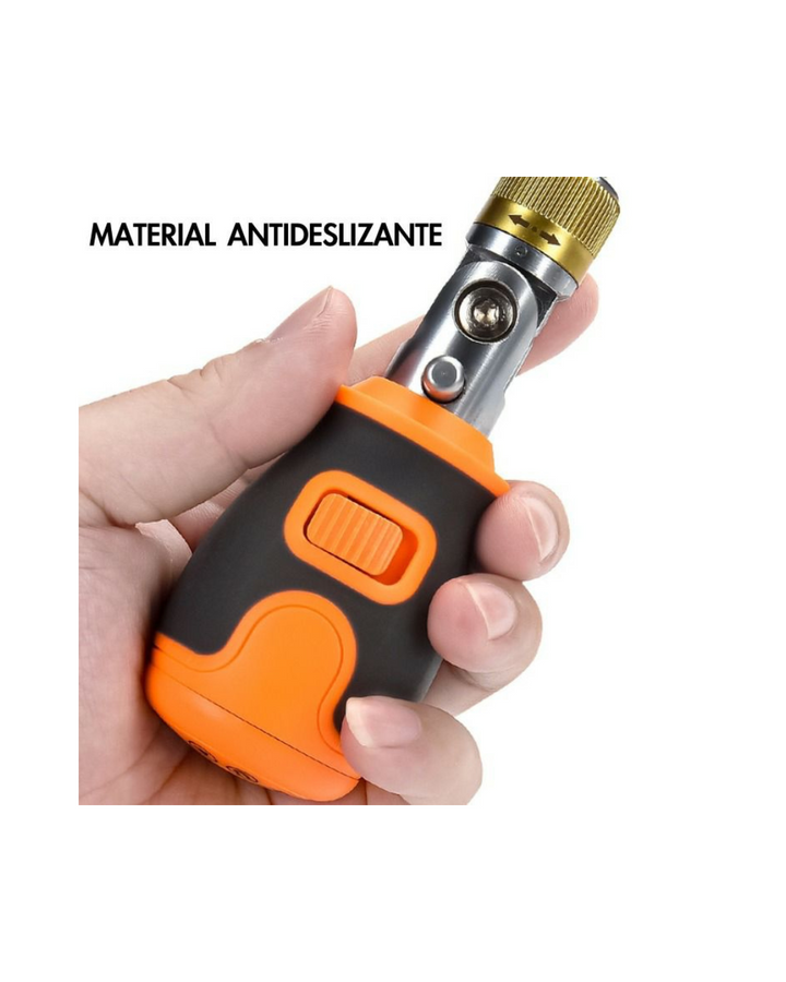 ¡Con el Destornillador 8 en 1, tendrás todo lo que necesitas en un solo herramienta! Este destornillador especialmente diseñado cuenta con varias brocas intercambiables, lo que te permite tener todas las medidas necesarias para cualquier tipo de trabajo. Además, su punta se puede doblar para alcanzar lugares difíciles y de acceso complicado en los que no cabe un destornillador común.