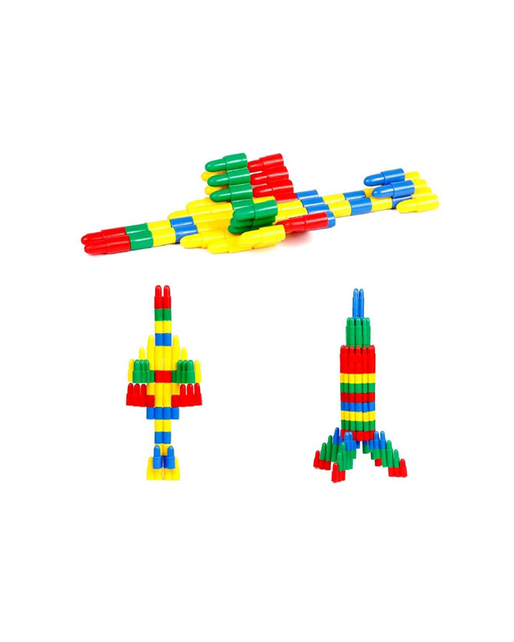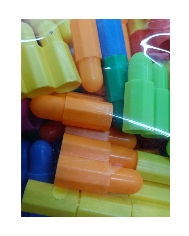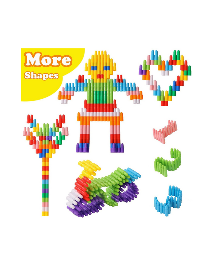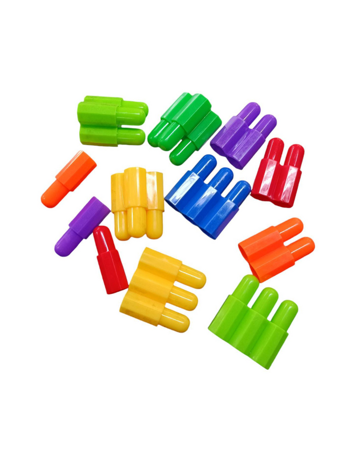 Las fichas de este set tienen una forma alargada en cono para mayor seguridad en el armado de figuras, gran fijación entre fichas para lograr estructuras grandes y seguras que no se romperán, fácil luego de separar para su guardado o limpieza.