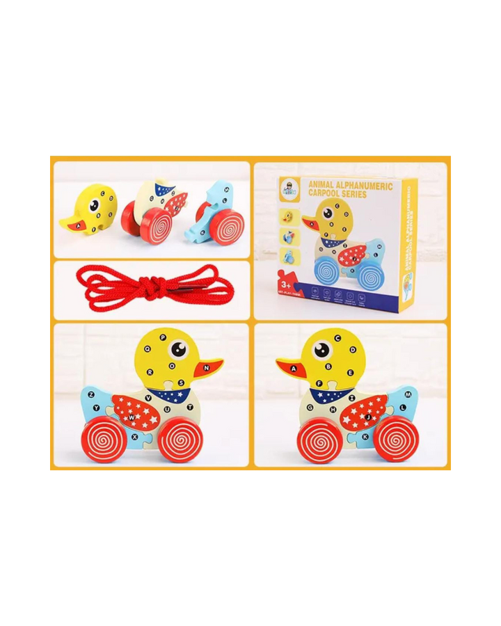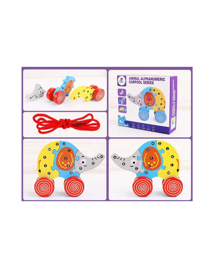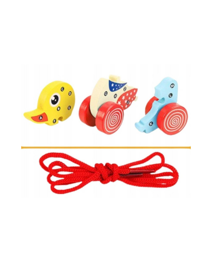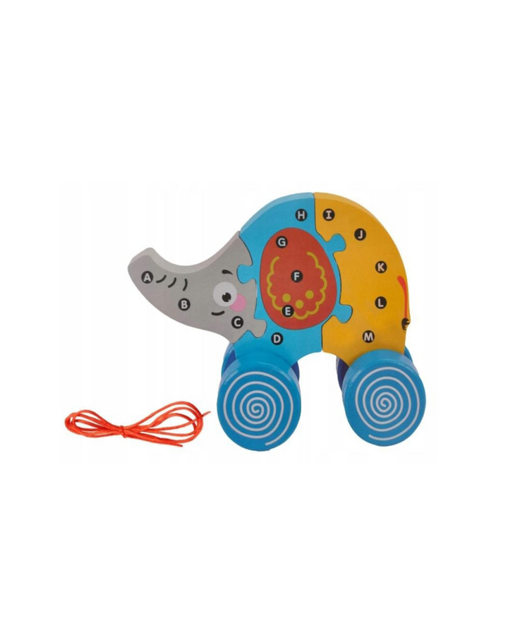 El rompecabezas 3D consta de tres elementos, por lo que el niño puede desmontar el juguete y luego volver a montarlo. El juguete tiene una cuerda atada, gracias a la cual el niño puede tirar de él y jugar con él de varias maneras, imaginando diferentes situaciones y divertidos esparcimientos.