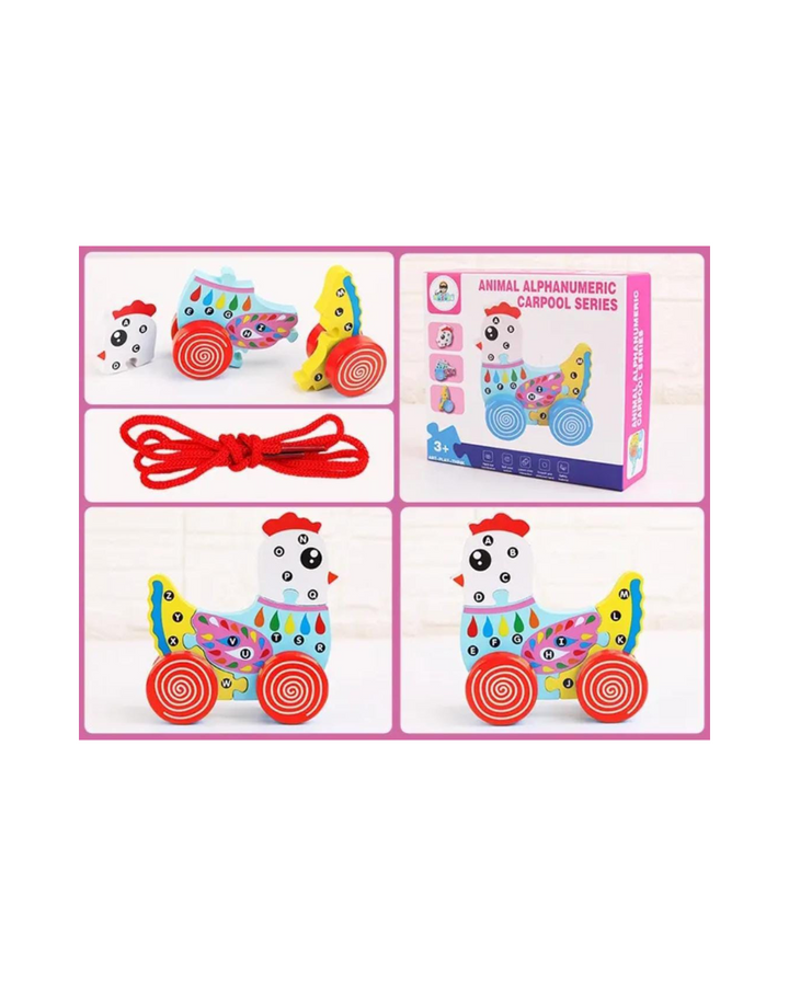 El juguete consta de 3 elementos y una cuerda, a lo cual el niño puede desplegar el juguete, ensamblarlo y luego tirar de él con la cuerda adjunta.