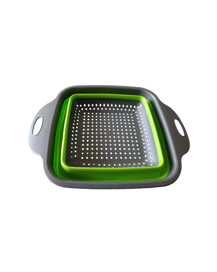 Este colador/escurridor plegable de silicona cuadrado es el complemento perfecto para tu cocina. Con una profundidad de 7.5 cm y un diámetro de 25 cm, este colador es ideal para escurrir tus alimentos de manera eficiente y sin complicaciones