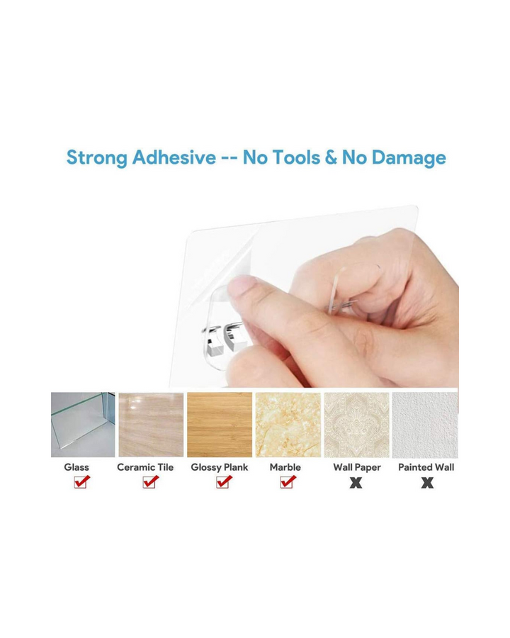 La adherencia del adhesivo es fuerte, la canasta de baño no se moverá fácilmente. Cuando está instalado, puede soportar 5 kg, equivalente a 10 botellas de 250 ml de agua. Se recomienda usarlo después de 24 horas de instalación.