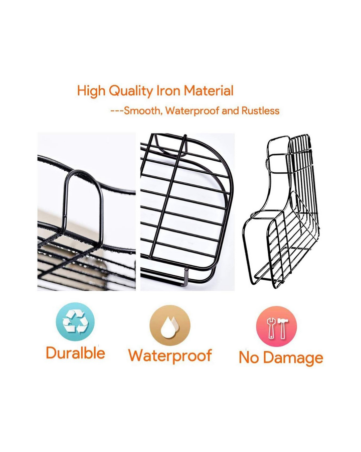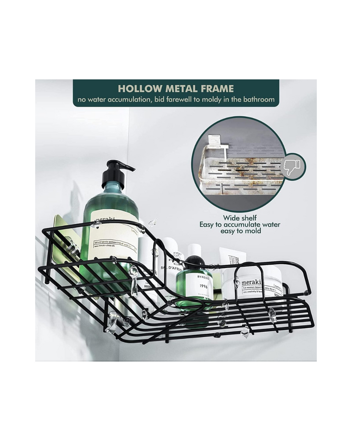 Este estante de ducha utiliza adhesivos sin capas para instalar, sin tener que perforar, evitando dañar la pared.