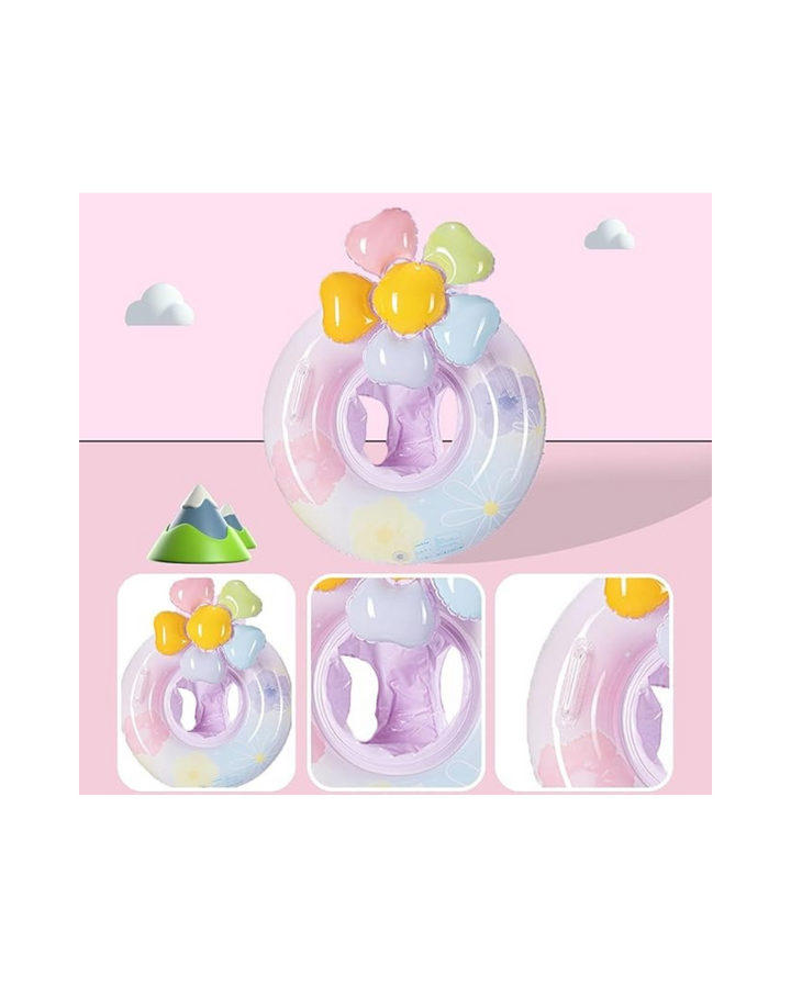 Asiento cómodo: diseñado con un asiento seguro y cómodo, proporciona un excelente apoyo para su bebé, permitiendo sentarse en posición vertical y disfrutar del agua sin volcarse.