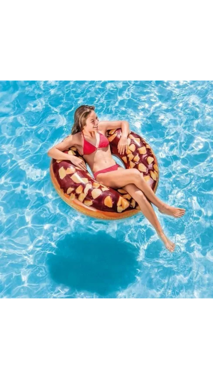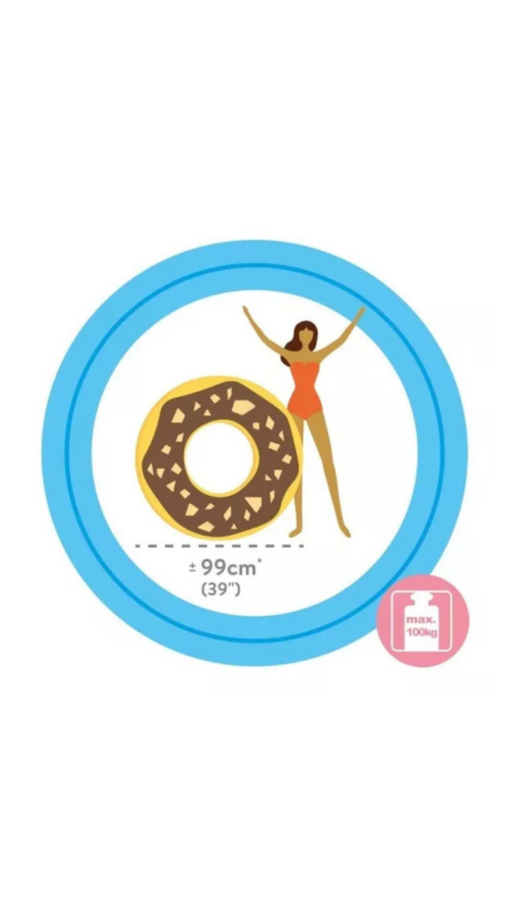 Este flotador tiene un increíble diseño que hace que parezca una Dona de verdad. Por la parte superior simula la dona de chocolate con dibujo de crocante en 3D.