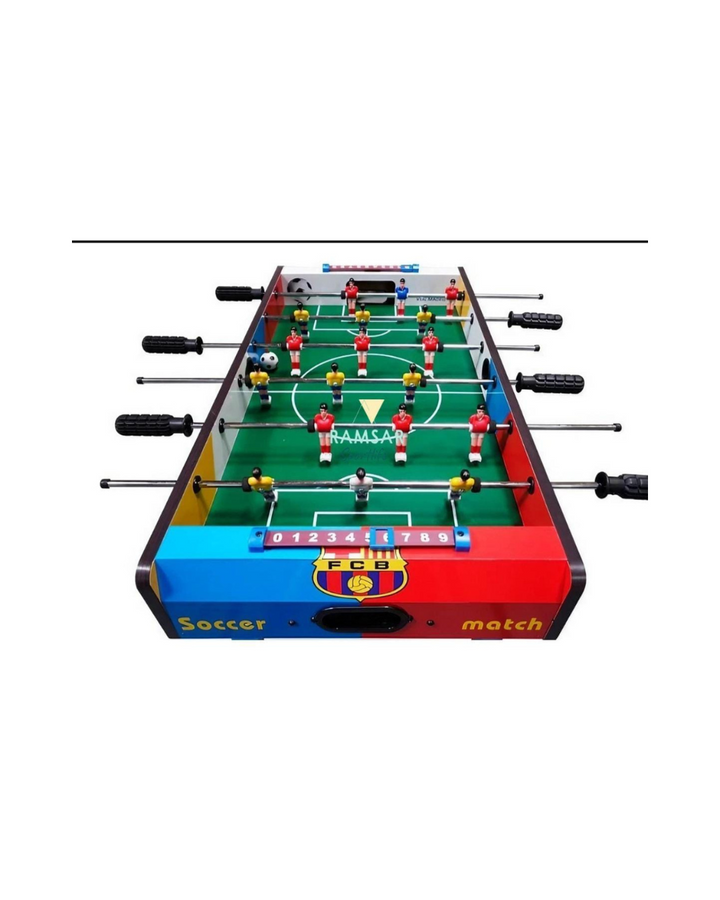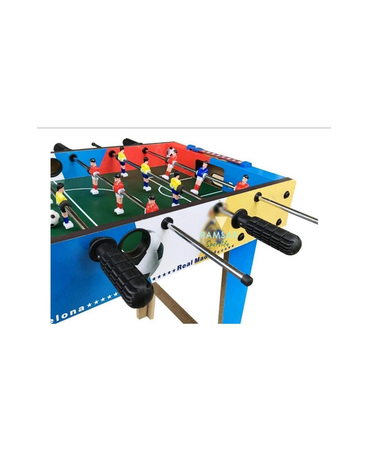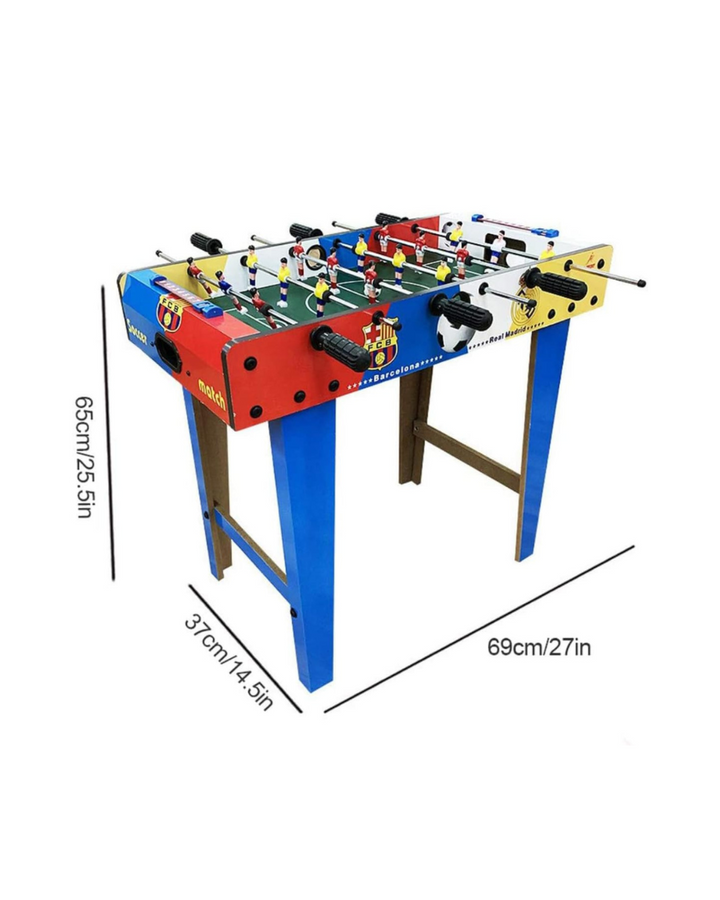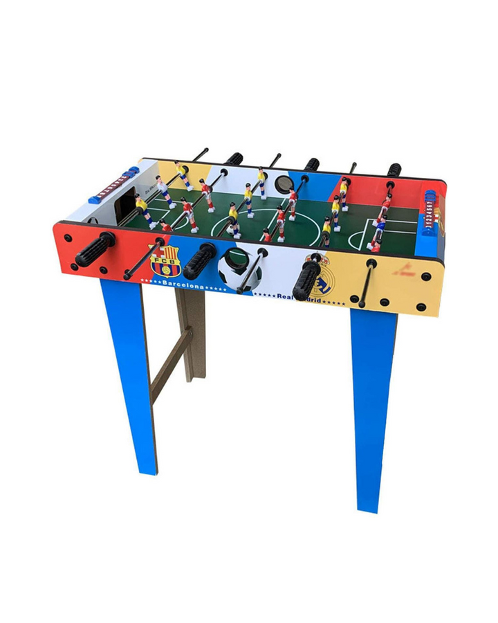 ¡Lleva la emoción del fútbol a casa con nuestro futbolín temático! Diseñado para fanáticos, este futbolín cuenta con detalles auténticos de los más grandes favoritos del futbol europeo. Ideal para partidas entre amigos o familia, ofrece diversión asegurada y una experiencia única. ¡Haz de cada juego una celebración del fútbol! Consigue el tuyo y juega como un profesional.