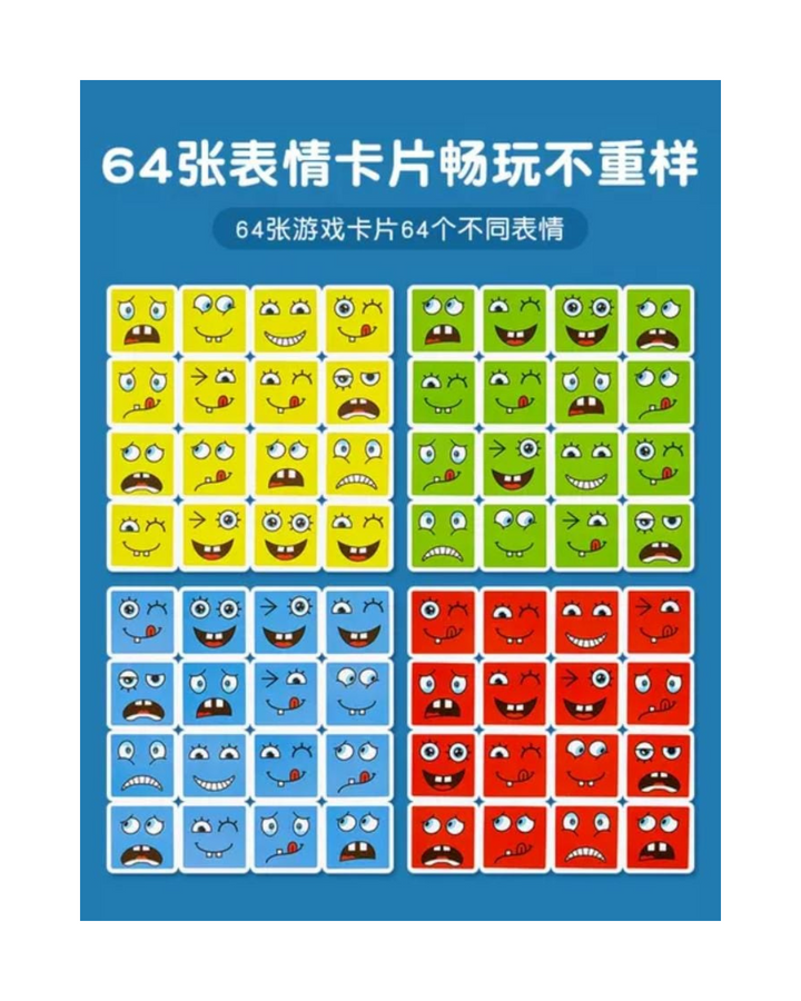 Los niños sujetan la tarjeta de emoji boca abajo sobre la mesa y abren una tarjeta a la vez, construyen los bloques de acuerdo con la referencia. El que tarda el menor tiempo gana.