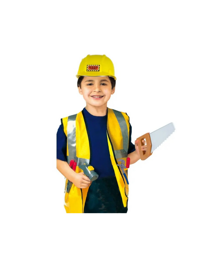 Tu pequeño estará listo para en su nuevo conjunto de disfraz de constructor.