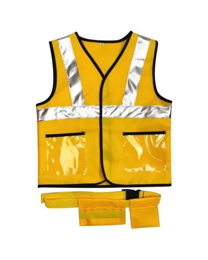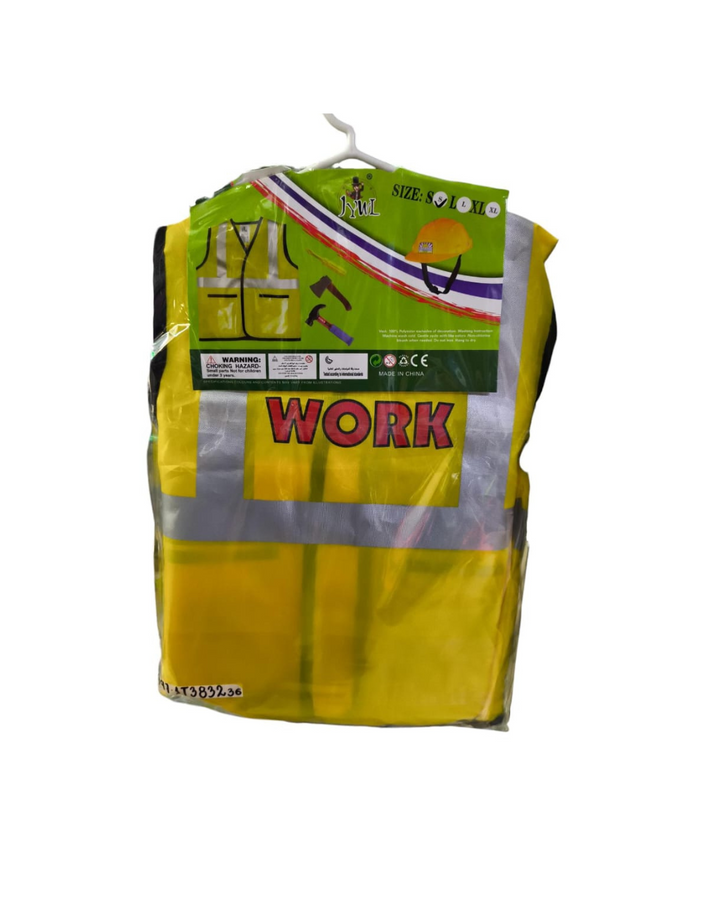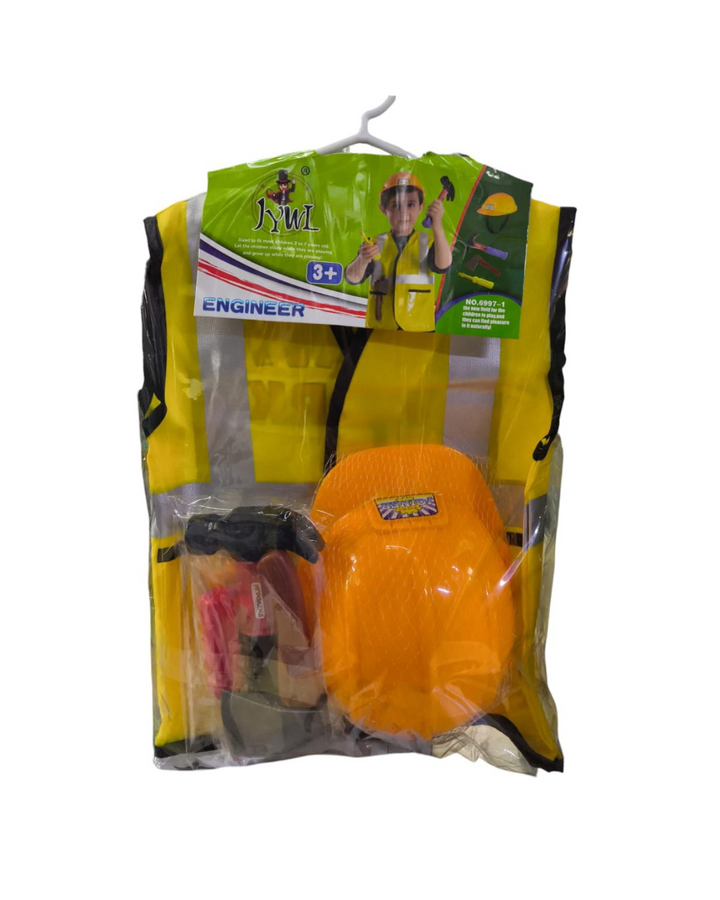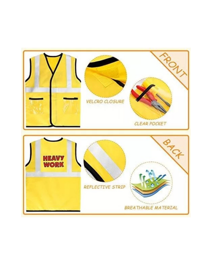 ¿Que incluye? 1 x chaleco con bolsillos, 1 x casco de constructor, 3 x herramientas, empaque plástico.