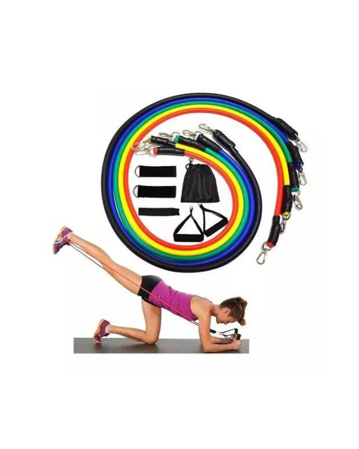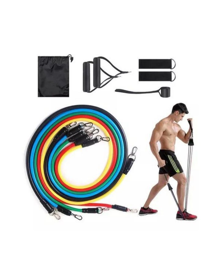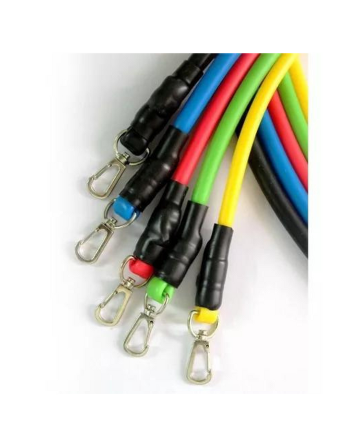 El set de tubos elásticos de 11 artículos de entrenamiento funcional es un conjunto completo para fortalecimiento en casa y en cualquier espacio que queramos.