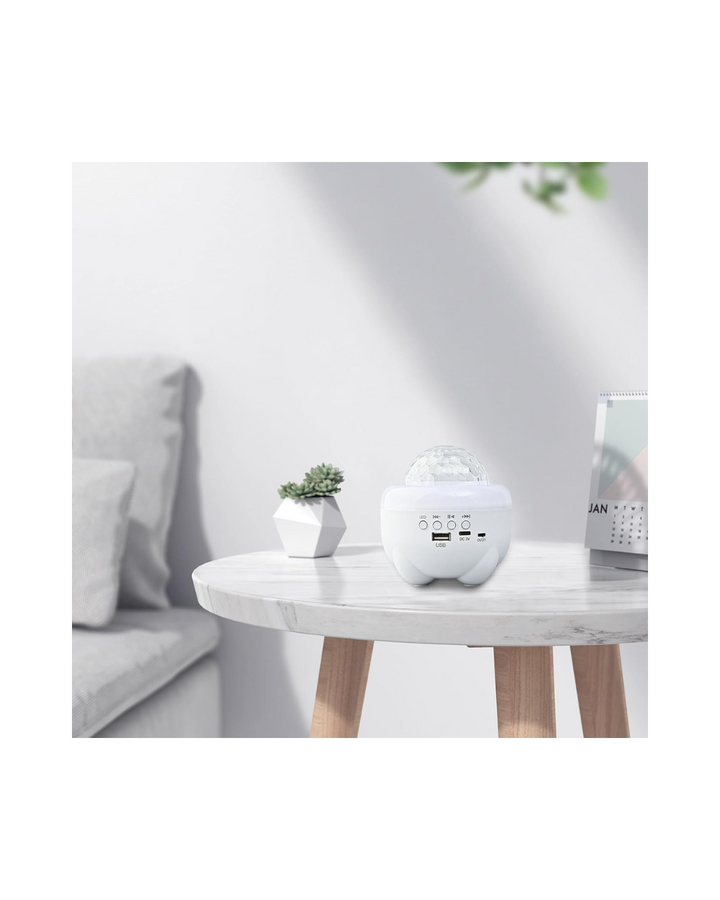 ¡Transforma las noches de tus pequeños con nuestra lámpara proyectora de luz nocturna! Crea un ambiente mágico proyectando estrellas y colores en la habitación, ayudando a calmar el miedo a la oscuridad. Con diferentes modos, conexión bluethoot y una luz suave, es perfecta para la hora de dormir. Ideal como regalo, ¡haz que cada noche sea una aventura estelar!