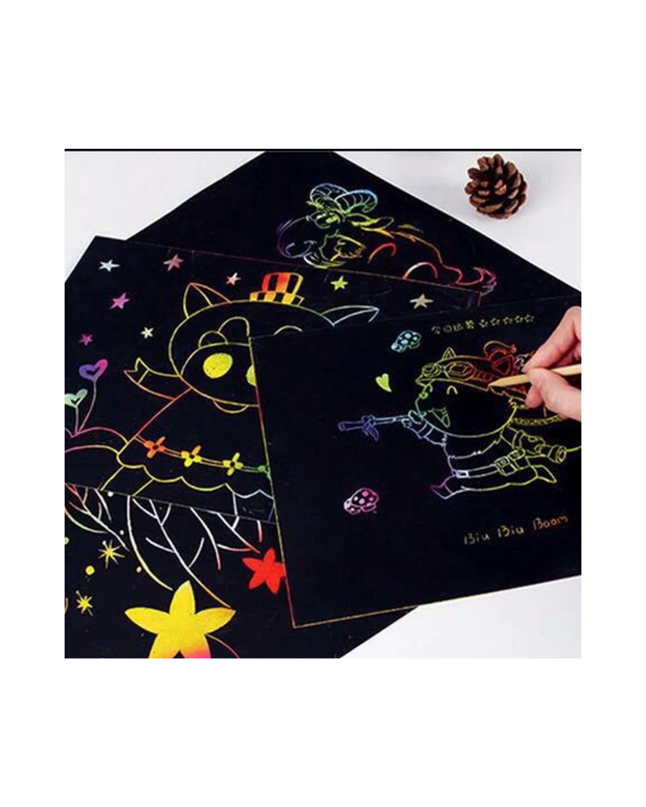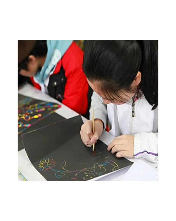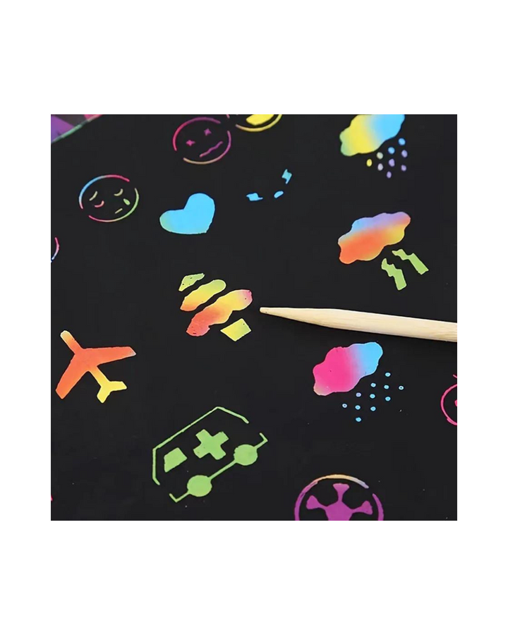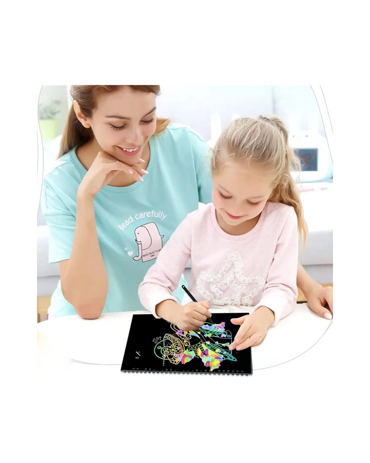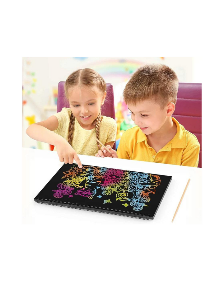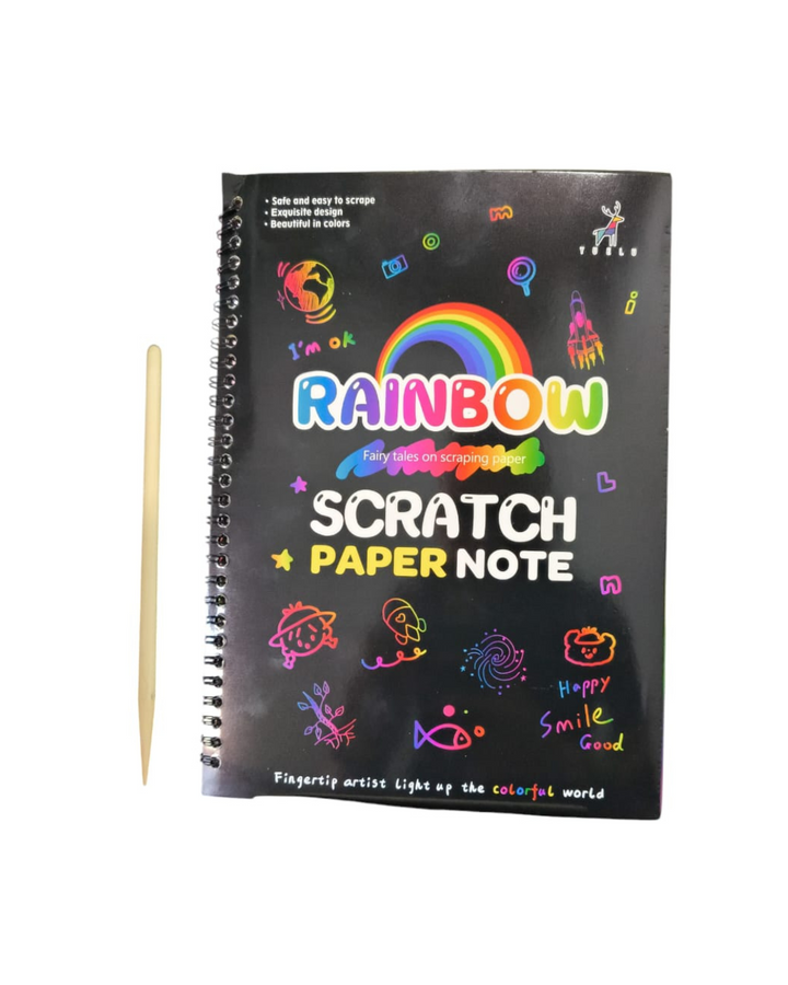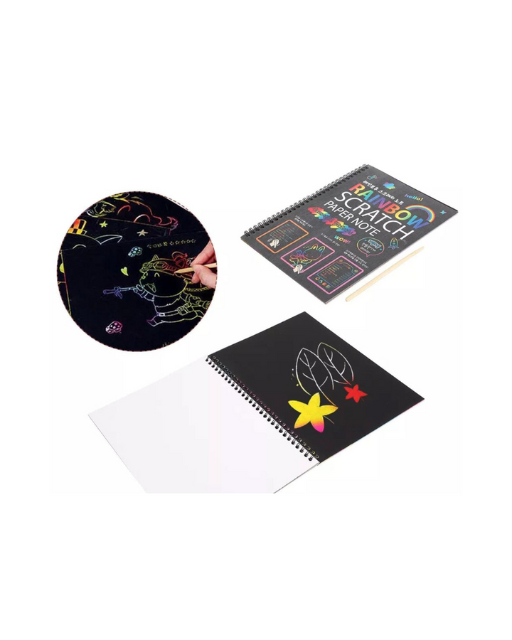 ¡Haz que tus ideas brillen con nuestra libreta Scratch! Con su diseño único y cubiertas vibrantes, es perfecta para escribir, dibujar o garabatear con estilo. Su superficie es totalmente negra fácil de tallar con su y crear descubriendo todos los colores escondidos, creando dibujos y anotaciones únicas.???? ¡Ideal para niños y jóvenes creativos! Consigue la tuya y agrega color a tus pensamientos.