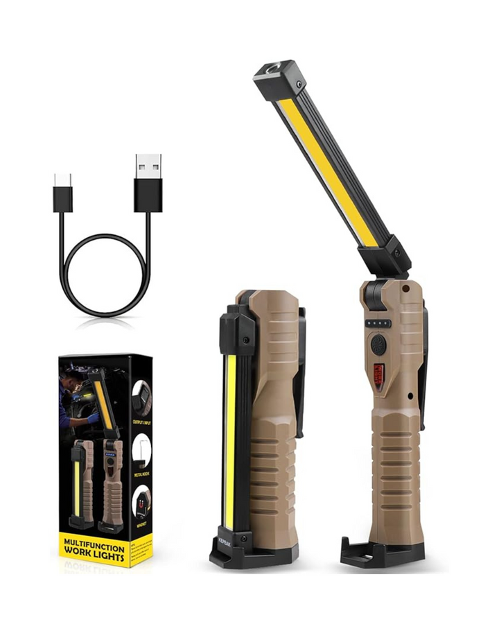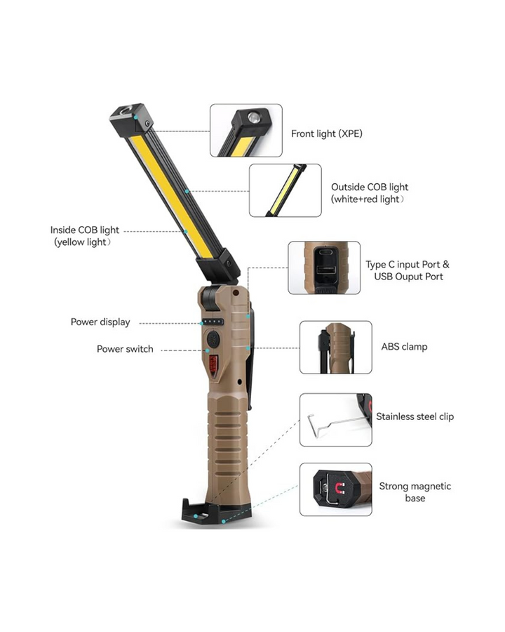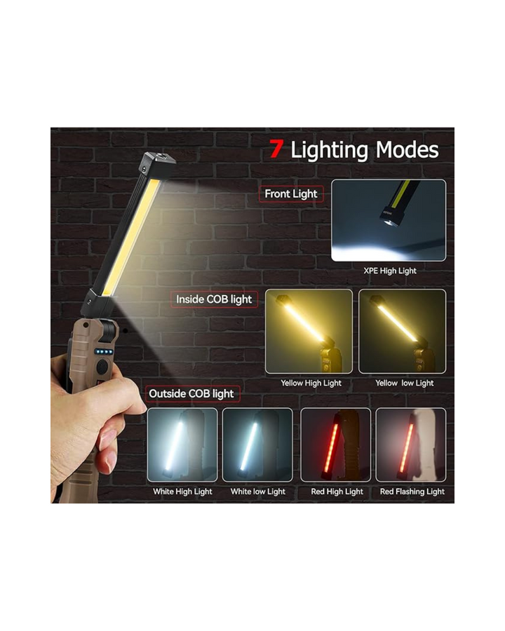 Plegable y versátil: con el diseño plegable, esta linterna led de trabajo de emergencia es compacta y fácil de llevar. Con modos de iluminación se puede utilizar como una linterna de mano, luz de trabajo, luz de parrilla, lámpara de mesa o luz de alerta. Es perfecto para reparación de automóviles, emergencias, garaje, cortes de energía, iluminación del hogar y regalos para Navidad o cumpleaños.
