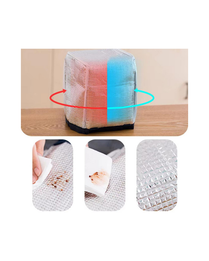 Internamente tiene papel de aluminio grueso, tres capas de aislamiento térmico, costuras meticulosas, también con material ecológico y duradero, dando un buen efecto de aislamiento térmico, siendo también fácil de limpiar.