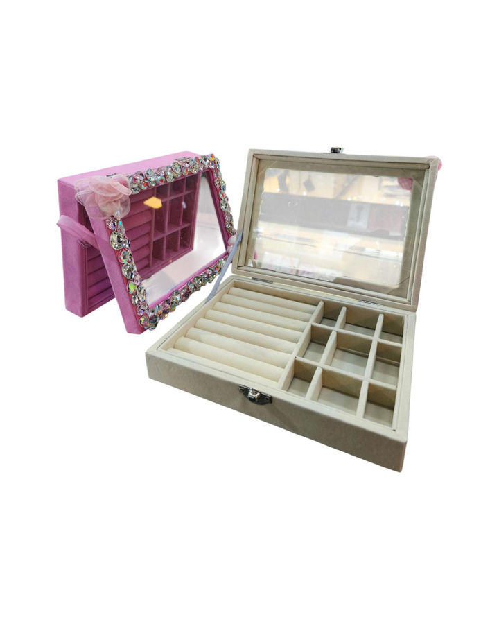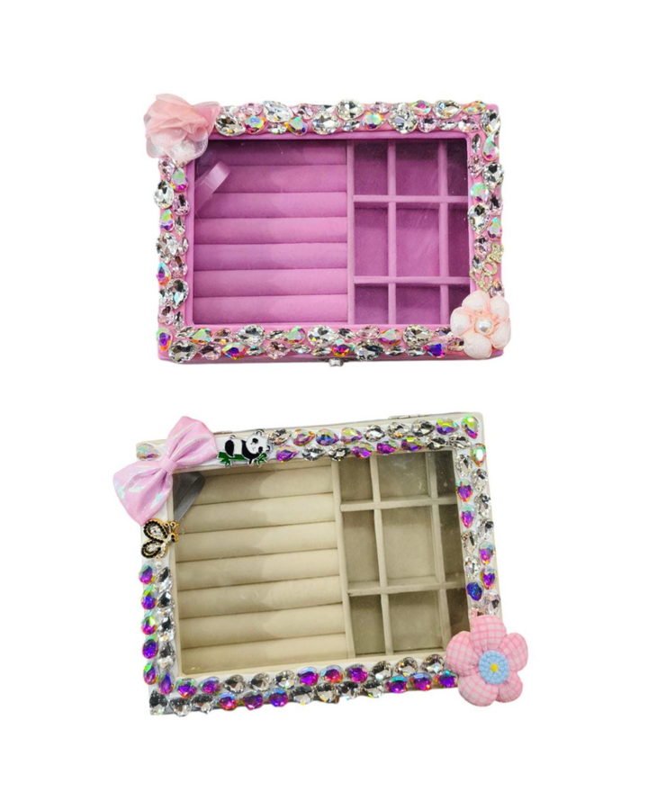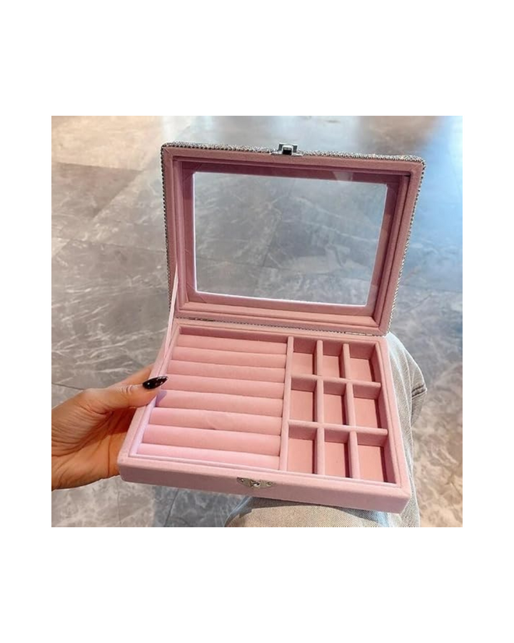 ¡Orden, protección y estilo en un solo lugar! Nuestro organizador con tapa transparente es ideal para mantener tus anillos, aretes y accesorios siempre visibles y protegidos. Perfecto para llevar de viaje o lucir en tu tocador.