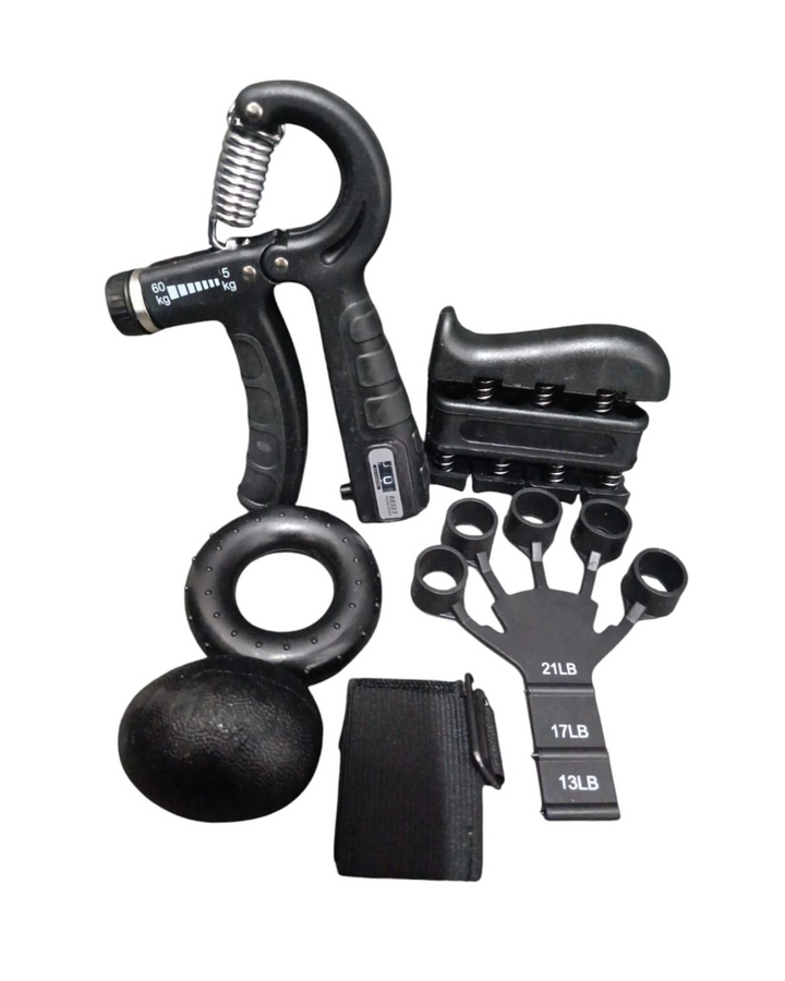 CKit con 5 tipos diferentes de fortalecedores de mano, dedos y antebrazo, podrás disfrutar de diferentes maneras de ejercitarte en casa o fuera de esta, siempre con la comodidad de un trabajo eficaz y sencillo.