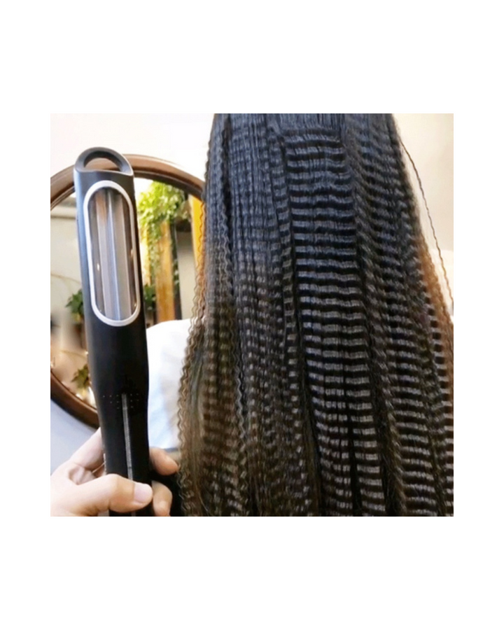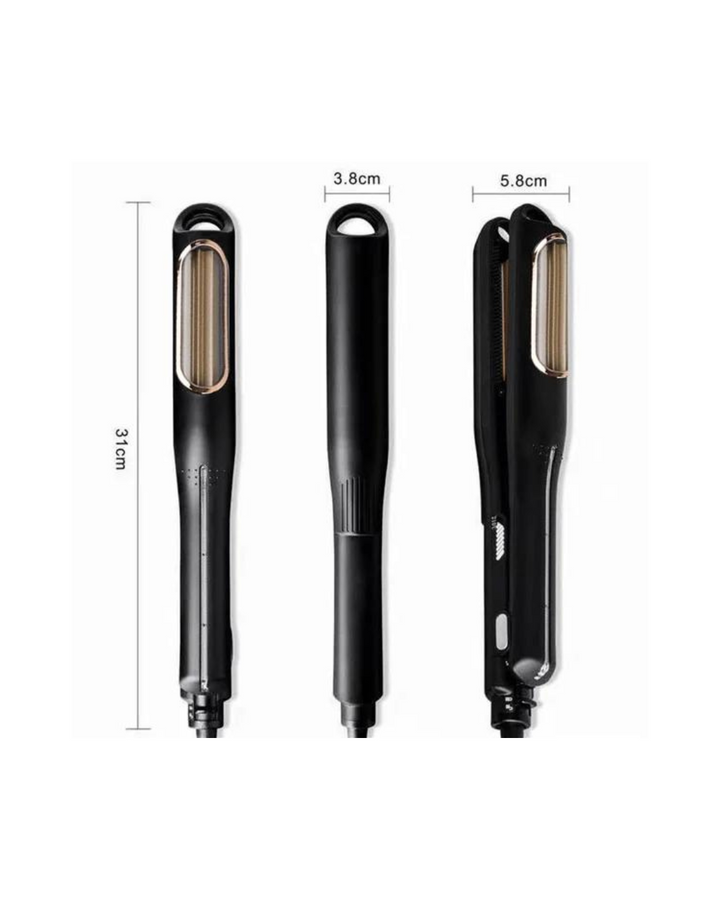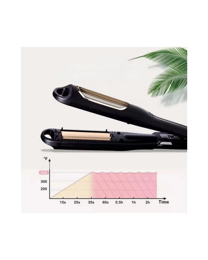 Está equipada con tecnología avanzada de calefacción, con revestimiento de cerámica, control de temperatura inteligente, teniendo un tiempo de calentamiento de 30 segundos (después de encenderla retire inmediatamente las manos del área de calefacción), placas onduladas innovadoras, ondas únicas en zigzag, distribución uniforme del calor, lo que permite garantizar un peinado duradero.
