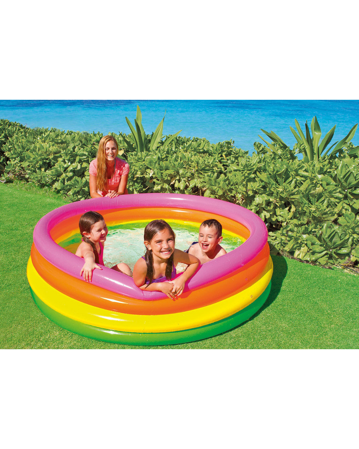 Piscina inflable para niños, medidas Ø168x46 cm con un bonito diseño de 4 colores, rosa, naranja, amarillo y verde Piscina inflable para niños, medidas Ø168x46 cm con un bonito diseño de 4 colores, rosa, naranja, amarillo y verde
