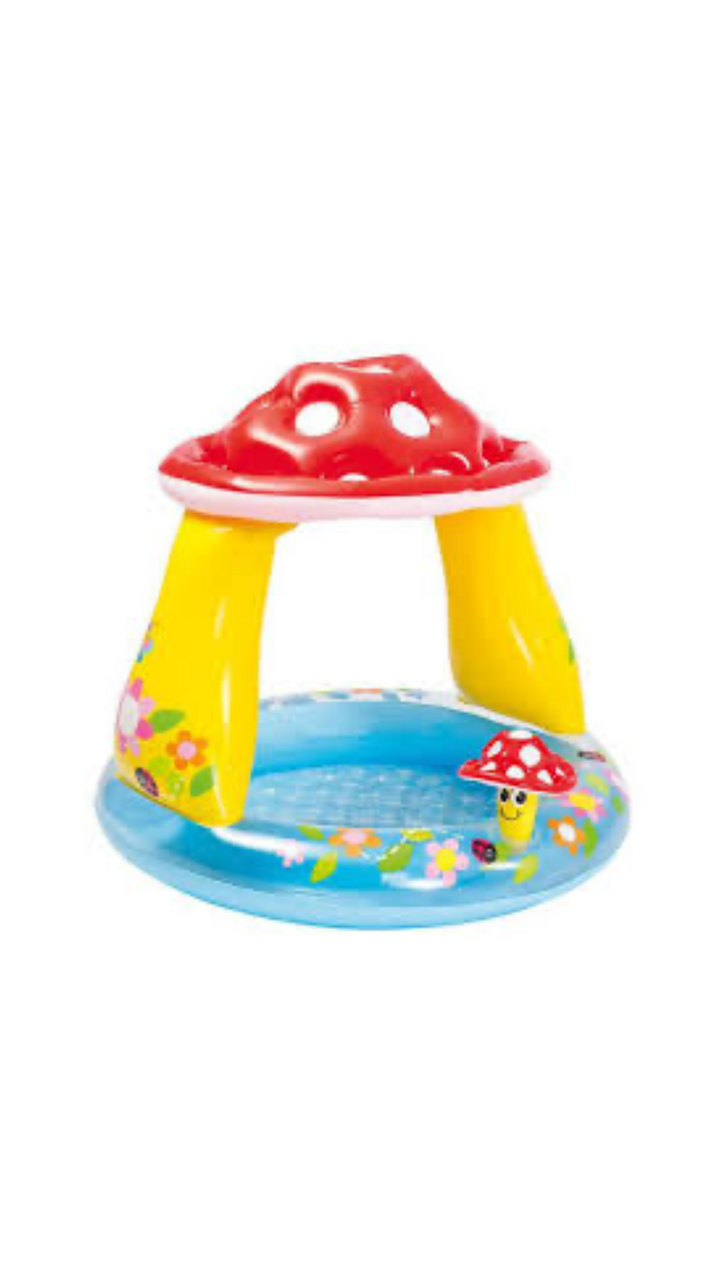 La piscina Intex Mushroom Baby Pool es una gran manera de escapar del calor del verano con tu pequeño. Cuenta con un divertido parasol estilo hongo y un amigo de hongos inflable a juego que hará que todo el mundo esté emocionado por salpicar.