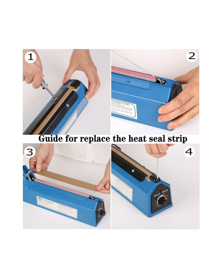 Sella rápidamente diferentes tipos de envases y bolsas de plástico. El sellador térmico funde una capa de plástico en otra, creando un fuerte sello permanente que solo se puede romper cortando o desgarrando. Hace que sellar bolsas de plástico sea un proceso rápido y fácil. El kit incluye banda calefactora removible de repuesto.