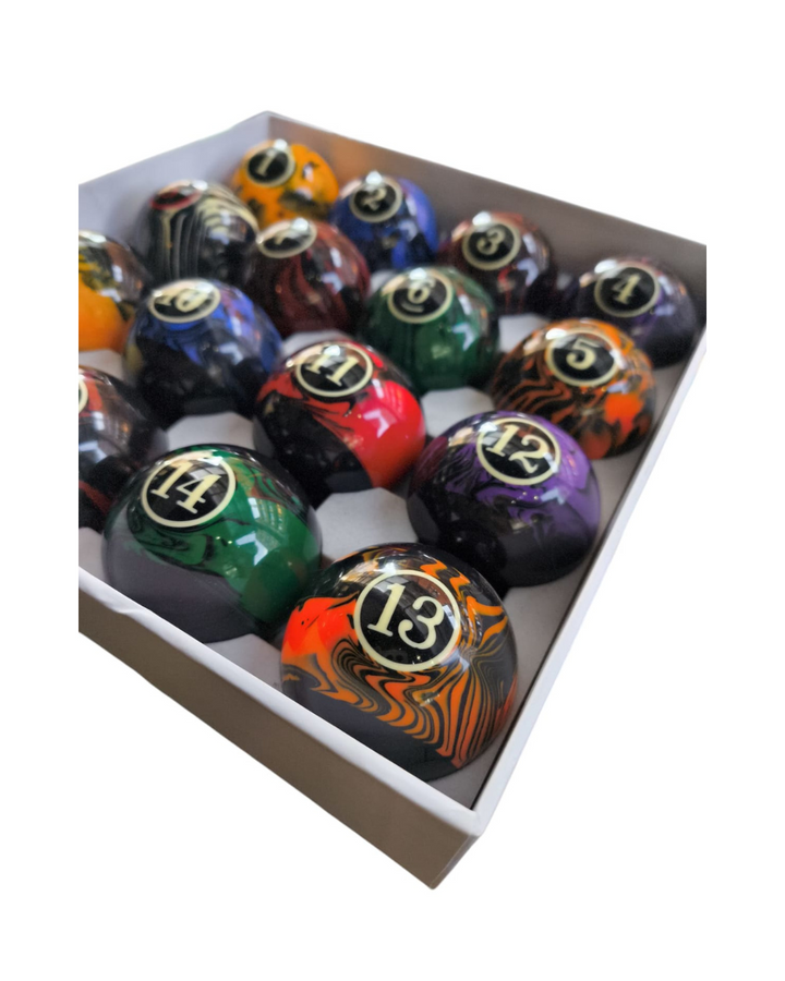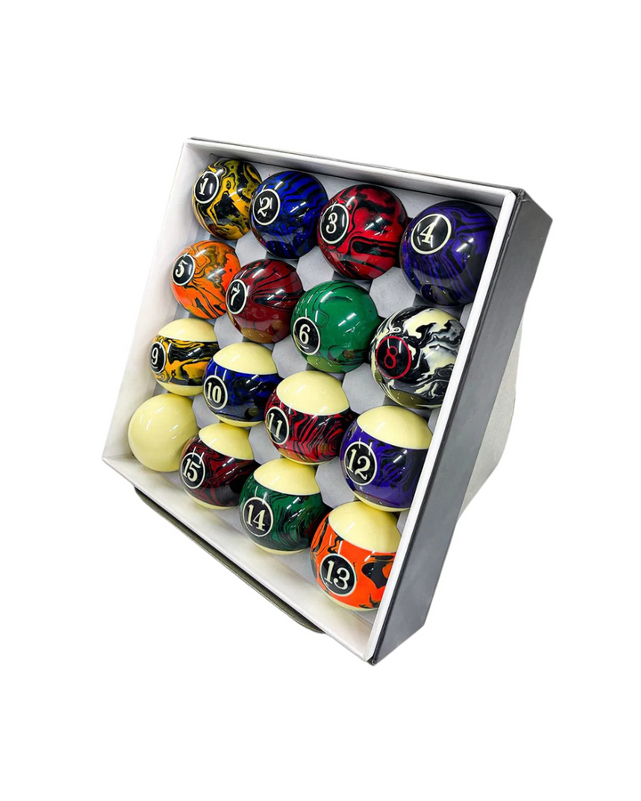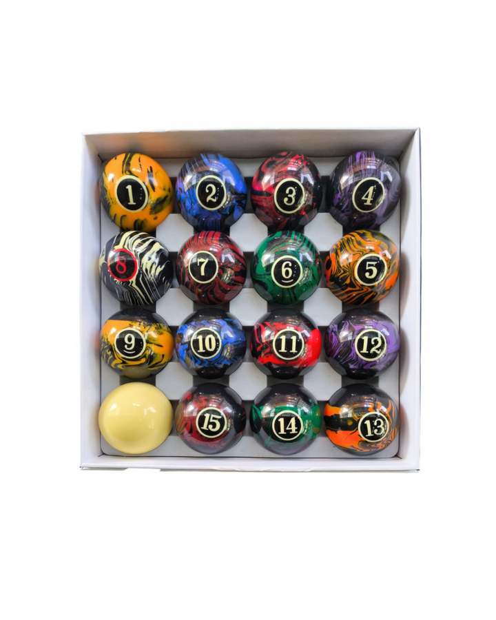 ¡Dale un toque único a tu juego con las bolas de billar veteadas! Diseño exclusivo con vetas elegantes, ideal para destacar en cada partida. Fabricadas con materiales de **alta resistencia** para un rodamiento suave y preciso.